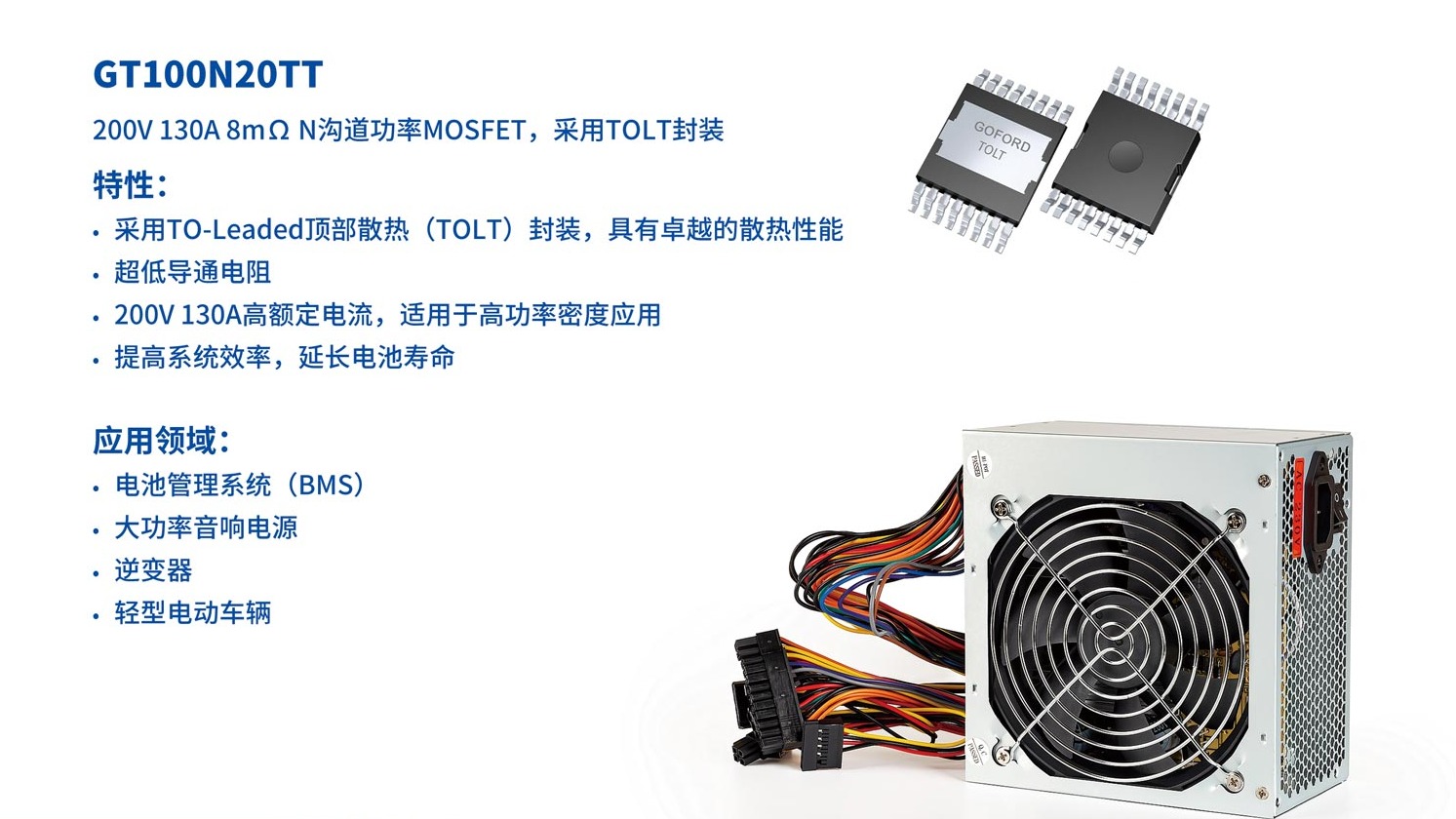 • 200V TOLT MOSFET:超低导通电阻 Rds(on) 8mΩ,超级紧凑