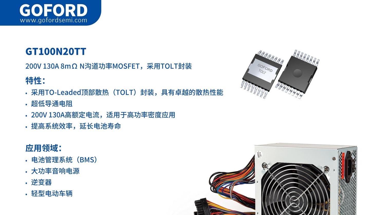 • 200V TOLT MOSFET:超低导通电阻Rds(on) 8mΩ,超级紧凑